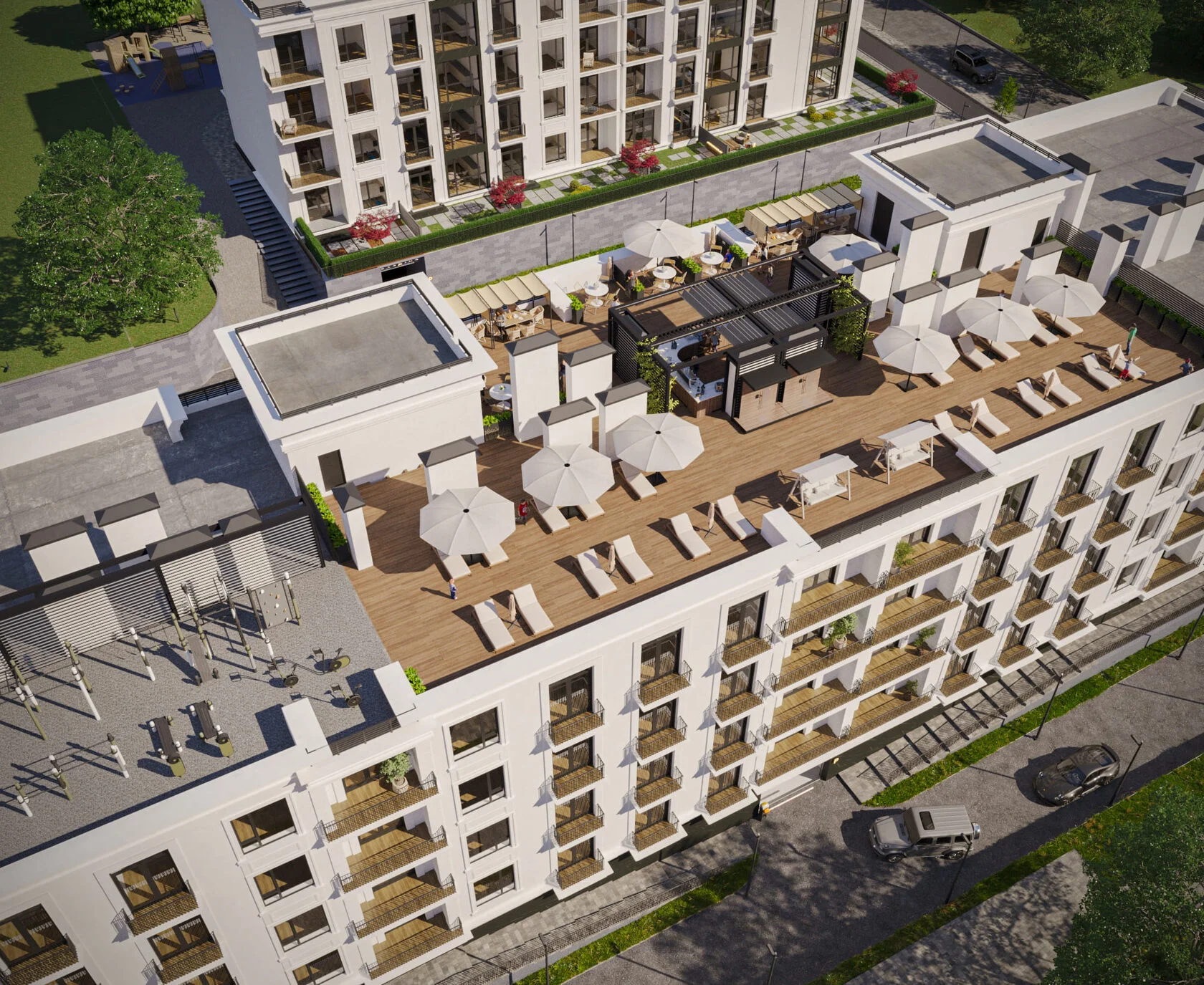 Просторные, залитые светом планировки плавно перетекают на приватные террасы, даря ощущение безграничного пространства и позволяя каждому дню начинаться с вдохновляющих видов под открытым небом